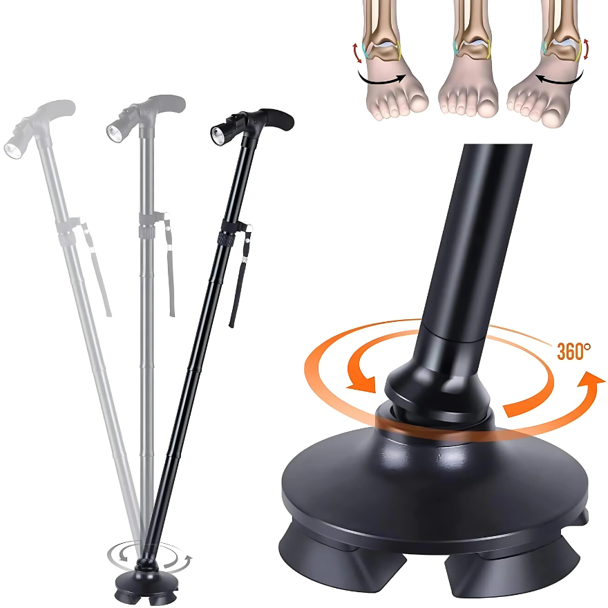 The cane features an ergonomic handle, a stable base, and a built-in LED torch, all contributing to increased stability and confidence, helping to prevent falls.