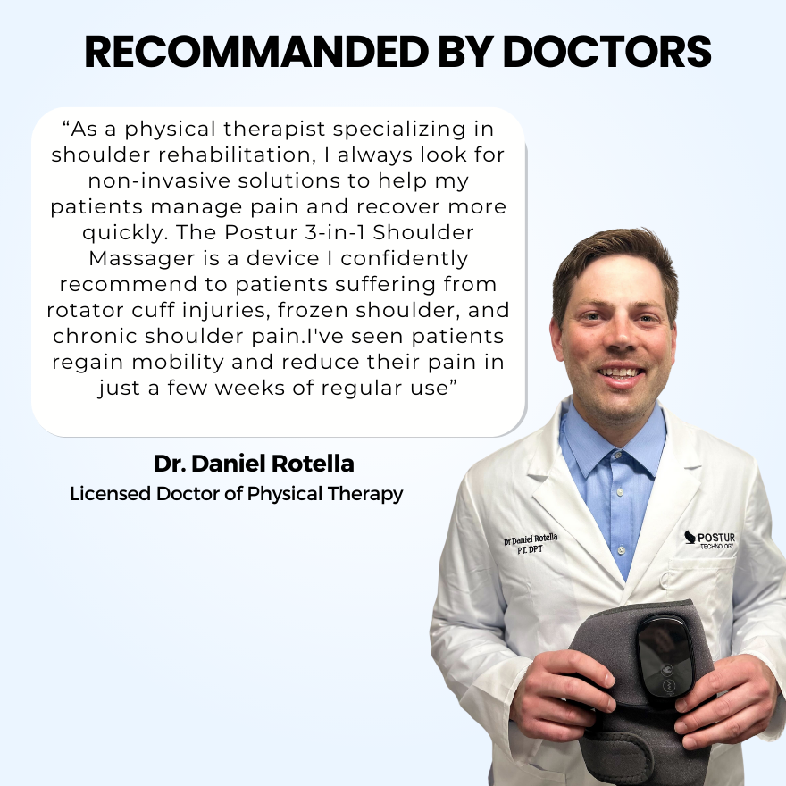 Dr. Rotella, a renowned medical professional, has studied and clinically proven the incredible benefits of the Postur 3-in-1 Shoulder Massager. Through his dedicated research, he has determined the massager to be an effective and safe form of rehabilitative care.