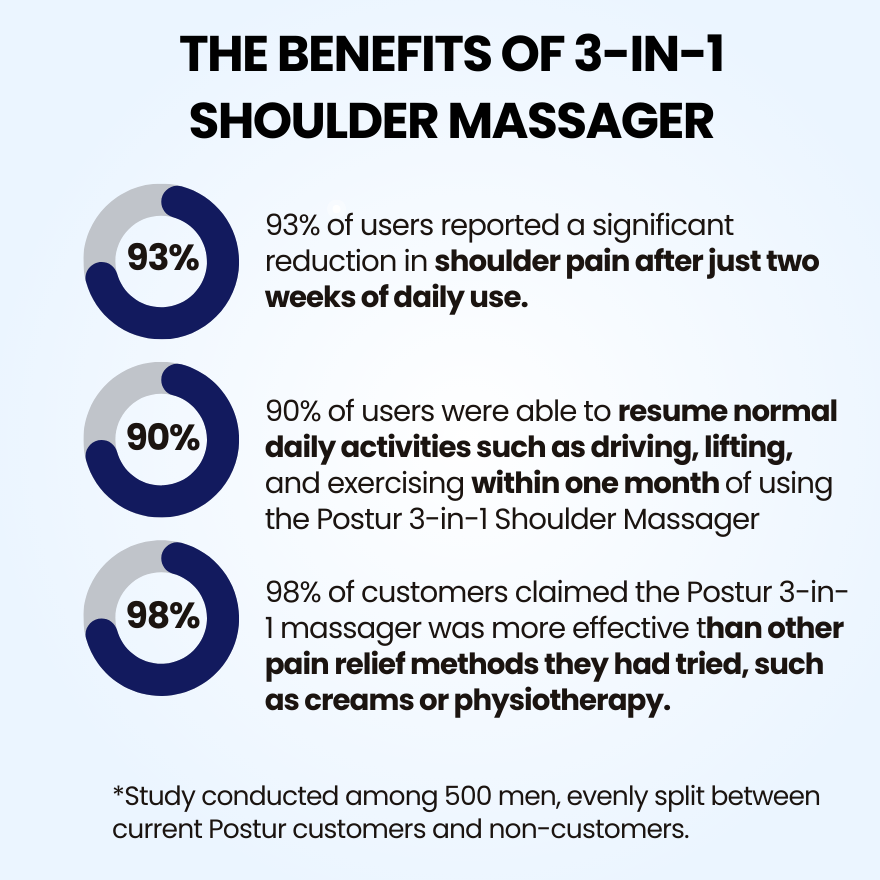 The Postur 3-in-1 Shoulder Massager reverses your Shoulder's pain and restores your health in just 15 minutes a day.